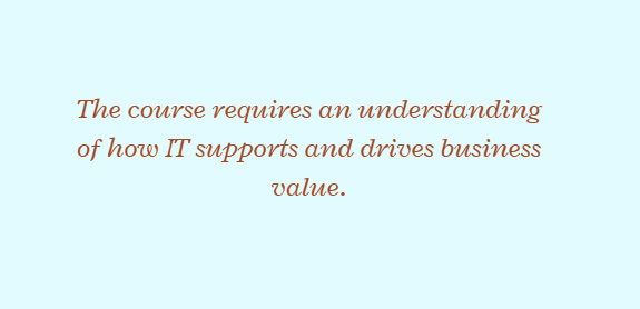 The course requires an understanding of how IT supports and drives business value. Topics like IT governance, business process management, and strategic alignment are not easy for everyone.