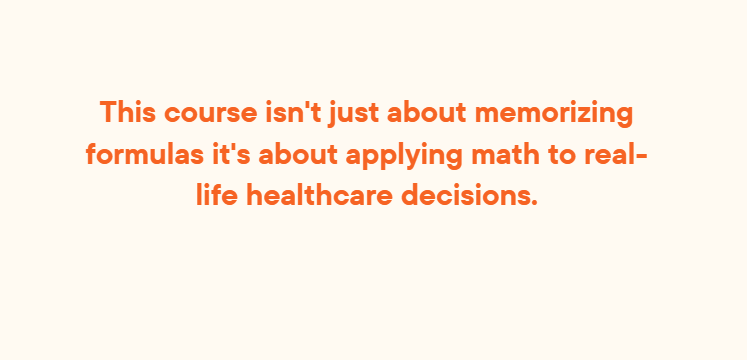 This course isn't just about memorizing formulas it's about applying math to real-life healthcare decisions. That makes it both valuable and challenging.