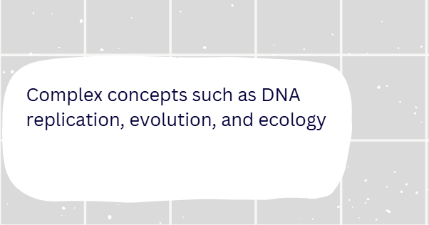 Complex concepts such as DNA replication, evolution, and ecology.